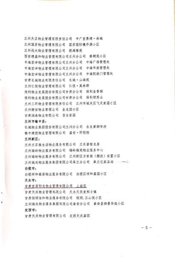 一直以來(lái),在置業(yè)公司的領(lǐng)導(dǎo)下,宜居陽(yáng)光物業(yè)嚴(yán)格按照“專業(yè)化,再專業(yè)化”的要求,著眼細(xì)節(jié)、規(guī)范操作,全力打造物業(yè)服務(wù)頂級(jí)、高端品牌形象。為進(jìn)一步加強(qiáng)內(nèi)部管理,扎實(shí)做細(xì)、做精客服、保潔、秩序維護(hù)、設(shè)施設(shè)備維護(hù)保養(yǎng)等基礎(chǔ)工作,各物業(yè)中心對(duì)照《甘肅省省級(jí)示范物業(yè)項(xiàng)目服務(wù)評(píng)價(jià)標(biāo)準(zhǔn)》(住宅物業(yè))(公共物業(yè)),想業(yè)主所想,做貼心服務(wù),竭力為業(yè)主提供安全、文明、整潔、滿足業(yè)主需求并且持續(xù)改進(jìn)的高品質(zhì)物業(yè)管理服務(wù),強(qiáng)化服務(wù)標(biāo)準(zhǔn)的落地,不斷提升服務(wù)品質(zhì),最終獲得了業(yè)主的廣泛好評(píng)、行業(yè)的認(rèn)可和社會(huì)各界的贊譽(yù)。自2015年以來(lái),蘭州建工瑞景、南河庭院、張掖濱河小鎮(zhèn)被評(píng)為“甘肅省優(yōu)秀住宅小區(qū)”,武威聚銀新都被評(píng)為“涼州區(qū)優(yōu)秀住宅小區(qū)”,天水上尚宅被評(píng)為“天水市第七批園林式居住區(qū)(單位)”,甘肅宜居陽(yáng)光物業(yè)管理有限公司榮獲2019年甘肅省最佳物業(yè)企業(yè)提名獎(jiǎng)和2020年度甘肅省疫情防控先進(jìn)集體。