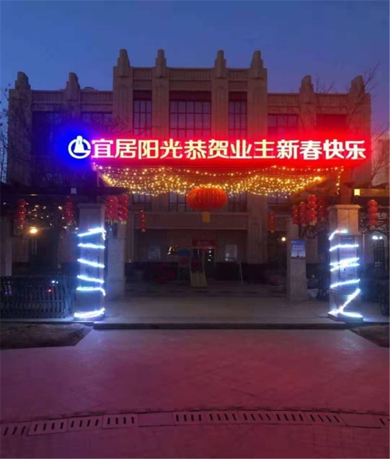 本次春節(jié)園區(qū)裝飾工作物業(yè)公司結(jié)合托管7個小區(qū)的實(shí)際情況,營造紅色“年味”,在主出入口以亮化字“宜居陽光恭賀業(yè)主新年快樂”為重點(diǎn),在小區(qū)主干道及道路兩側(cè)以特色燈飾裝飾做烘托,業(yè)主目之所及之處都是一個個飛上屋檐的大紅燈籠、一幅幅貼上墻壁的對聯(lián)、一顆顆開滿“鮮花”的樹木,夜幕降臨整個小區(qū)更是火樹銀花,星光點(diǎn)點(diǎn)充滿了節(jié)日的氣氛,多層次、立體化展現(xiàn)春節(jié)風(fēng)俗,達(dá)到“賞心悅目”的節(jié)日景觀。