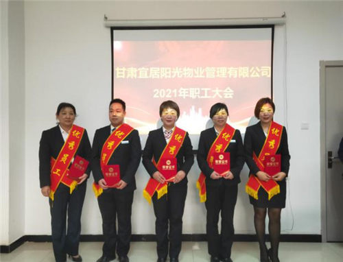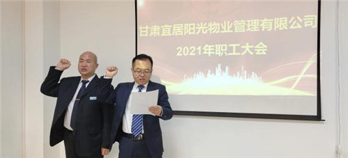 2021年3月17日,甘肅宜居陽光物業(yè)管理有限公司2021年職工大會順利召開,物業(yè)公司機關(guān)全體工作人員、各物業(yè)中心主任、2020年度先進代表參加會議,置業(yè)公司黨委委員、工會主席孫靜,置業(yè)公司紀委辦公室主任孟曉龍應邀出席會議。