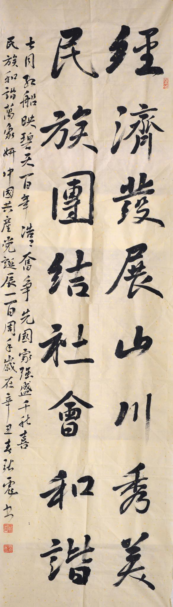 書法作品筆精墨妙,一橫一豎頌揚(yáng)黨的偉大征程,一撇一捺展現(xiàn)黨的光輝使命。