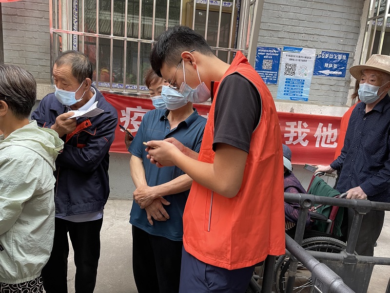 一大早,疫苗接種現(xiàn)場就已排起長隊,在與社區(qū)衛(wèi)生服務(wù)中心的醫(yī)務(wù)工作者詳細(xì)了解疫苗接種的具體流程和注意事項后,志愿者們紛紛投入到各自的分配工作中,由于現(xiàn)場接種人員多為老人和未成年人,志愿者們便耐心幫助老人打開他們手機(jī)上健康碼并為他們測量體溫。在入口處和預(yù)檢臺,志愿者提醒每一位來接種的群眾準(zhǔn)備好相關(guān)材料,并幫助一些患有眼疾的老人填表登記。為保證疫苗接種的有序開展,一部分志愿者為現(xiàn)場接種人員提供秩序引導(dǎo)、預(yù)約登記、留觀提示、情緒安撫等服務(wù)并向接種者講解接種疫苗注意的事項以及留觀30分鐘注意事項?,F(xiàn)場忙得不可開交。一天下來,志愿者們精疲力盡,但因為收獲了很多的“謝謝”,內(nèi)心感到充實又欣慰。