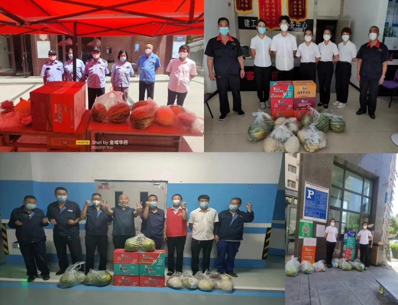 本輪疫情發(fā)生以來,公司在蘭的五個物業(yè)服務中心近150名物業(yè)服務人員半個月來日夜堅守崗位,不僅保障了封控小區(qū)4000多戶業(yè)主日常物業(yè)服務,還承擔了小區(qū)核酸采樣、防疫消殺、人員管控等大量疫情防控任務,公司工會為物業(yè)服務中心在崗職工送去方便面、瓜果等生活物資,把公司黨政的關懷送到每一位一線職工的身邊,讓“疫”線職工無后顧之憂,在抗疫前線安心、暖心工作。