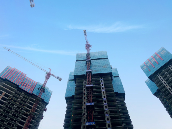 項(xiàng)目規(guī)劃總建筑面積212469㎡,自18年3月1日正式開工,歷經(jīng)一年零4個(gè)多月的時(shí)間,一年多的寒暑,四百多個(gè)朝夕,在現(xiàn)場全體人員的辛勞工作下,頂著高溫酷暑、暴雨侵襲,克服種種技術(shù)難題,保質(zhì)量、保安全、保進(jìn)度,如期完成了主體結(jié)構(gòu)的封頂。