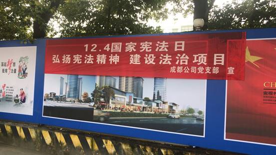 12月1日至7日,是我國的第六個“憲法宣傳周”。為廣泛開展憲法學習宣傳教育,大力弘揚憲法精神,維護憲法權威,更好地發(fā)揮憲法在項目建設中的重大作用。成都公司黨支部開展了形式多樣的憲法宣傳周活動,通過在項目辦公室、建筑工地懸掛宣傳橫幅、LED顯示屏播放《憲法》知識、組織員工專題學習等方式,讓憲法深入人心,在項目上生根發(fā)芽。
